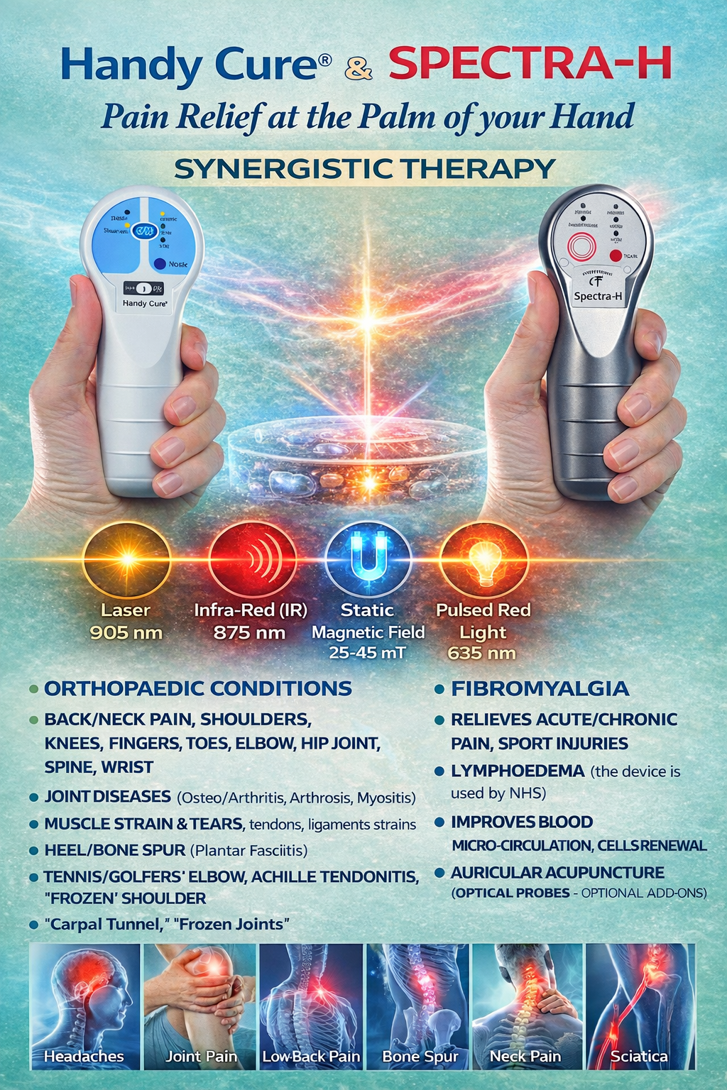 I bought the Handy Cure laser for my mother. She has had both hips replaced in the past year and spinal surgery five years ago. A very complex 72 year old patient, she took a very hard fall on the ice two months ago and had hairline rib fractures and a bone bruise on her femur at the right trochanter. She had excruciating pain for a month and several trips to the ER and multiple visits to see her doctors and was using a walker for all movements, a very grim situation. Within 4 to 5 days of using the Handy Cure 3 to 4 times per day over her hips, spine, and ribs her pain levels dropped by 70%. Itâs the first time since her fall sheâs had any relief and itâs the only therapy she was doing. Amazing results and she is well on her way to a great recovery, Iâm very impressed!